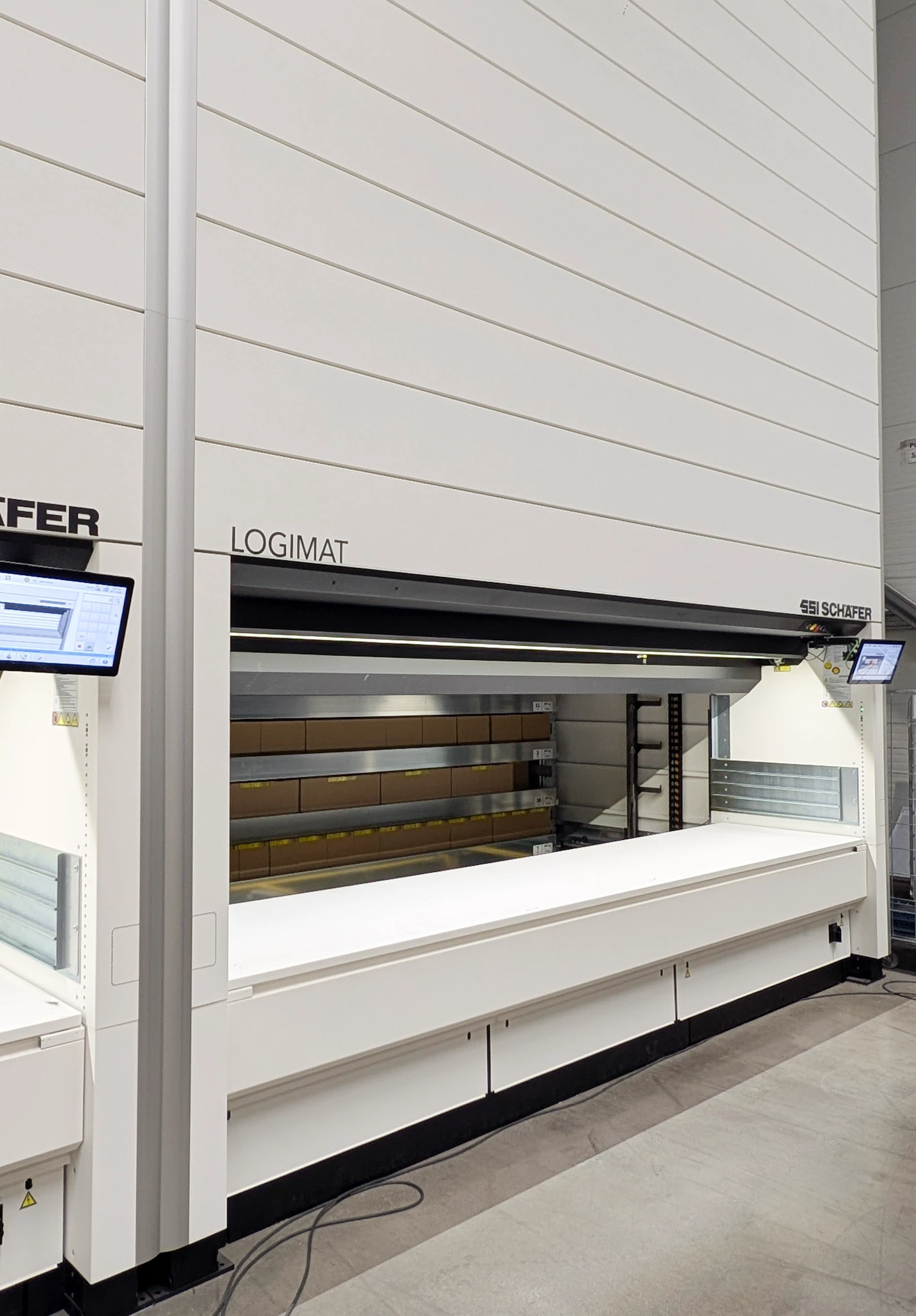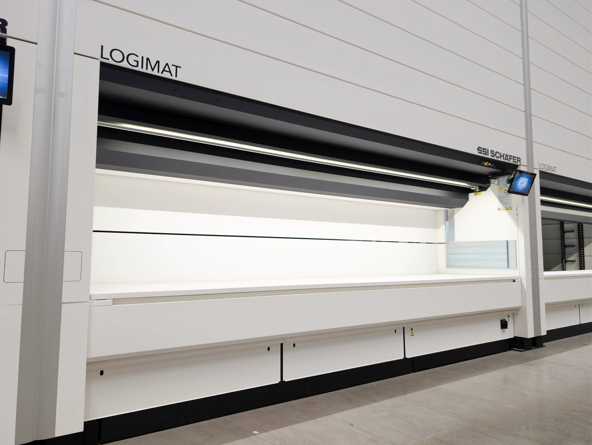 LogiGate is a door that separates the lift area and the picking opening. This feature saves energy, reduces noise and keeps dirt out of the machine.