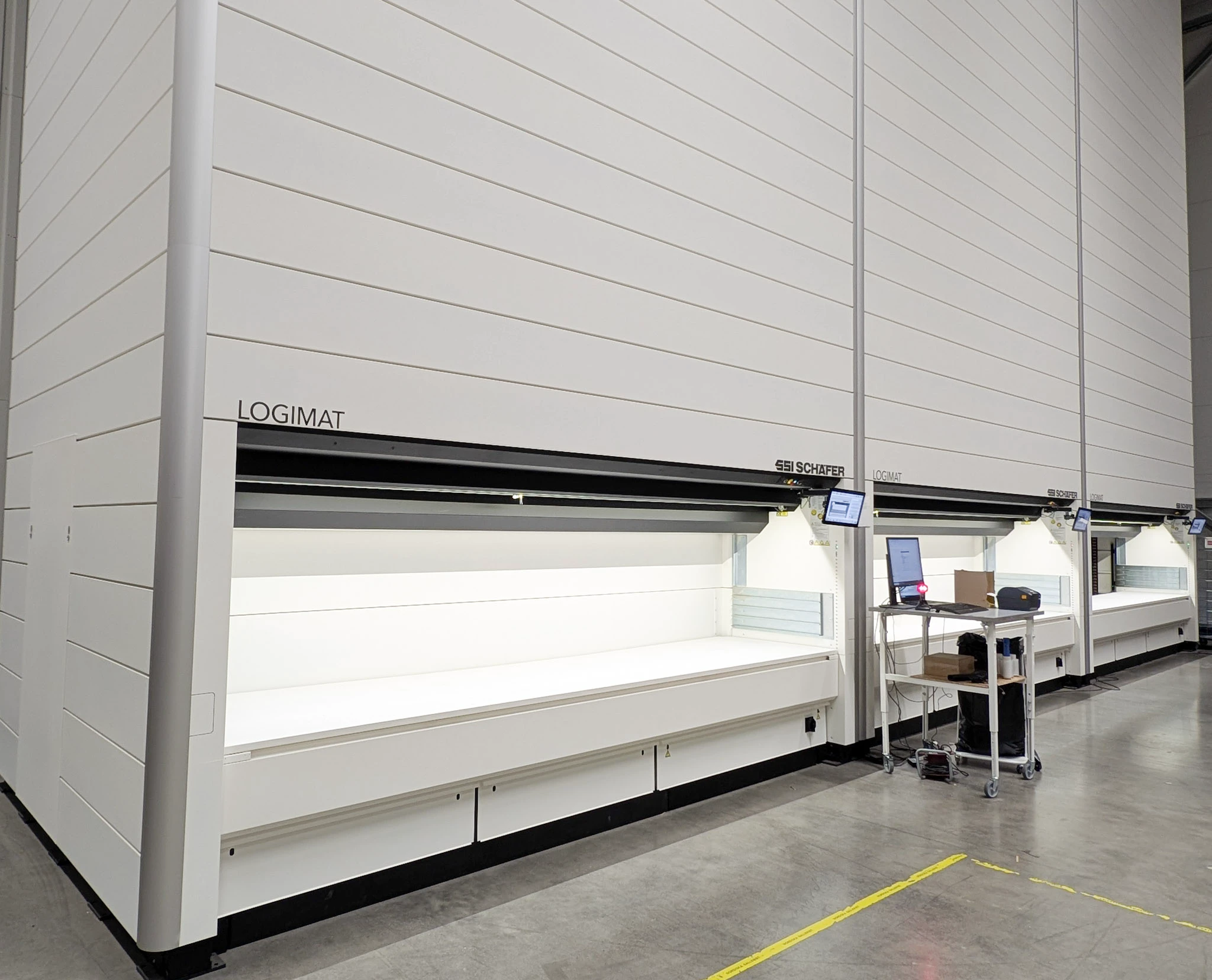 We have three SSI Schäfer Logimat SLL vertical lift modules from 2022 for sale. The machines are in very good condition as they have been used very sparingly and have been serviced annually by the Manufacturer since installation. This makes them a very attractive option as they are basically like new and offer a reliable and high-quality storage solution for companies looking for efficient automated warehouse management.